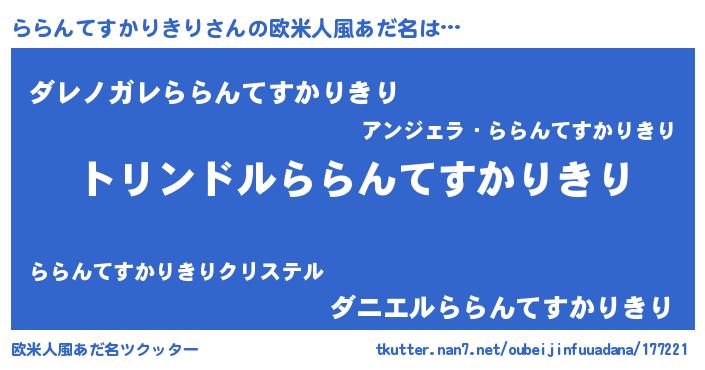 | 料理風あだ名 | 『ららんてすかりきりごはん』 |