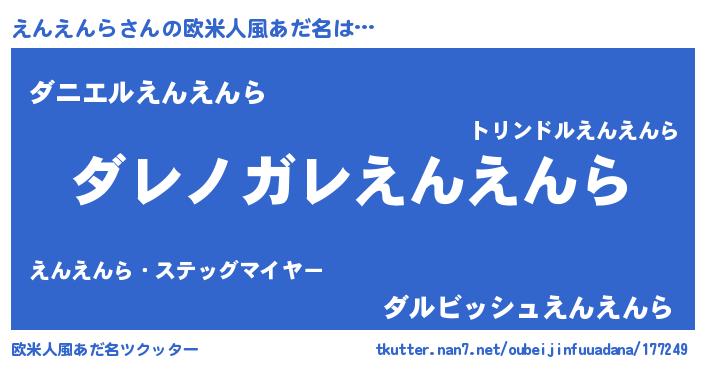| 意味不明あだ名 | 『住所不定無職えんえんら(77歳)』 |
