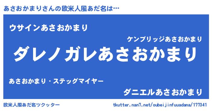 | 男性向けラノベタイトル風あだ名 | 『この素晴らしい世界にあさおかまりを!』 |