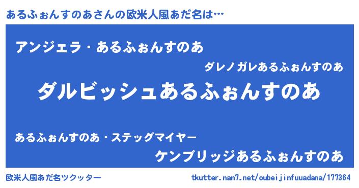 | 男性向けラノベタイトル風あだ名 | 『あるふぉんすのあという概念が存在しない退屈な世界 』 |