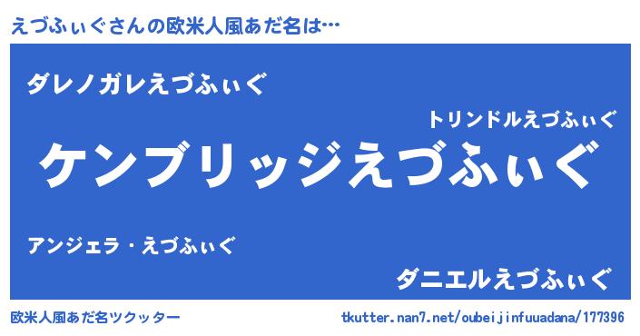 | 男性向けラノベタイトル風あだ名 | 『Re:えづふぃぐから始める異世界生活』 |