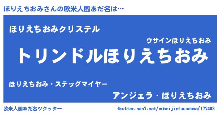 | 女子向けラノベタイトル風あだ名 | 『ほりえちおみの玉の輿計画!』 |