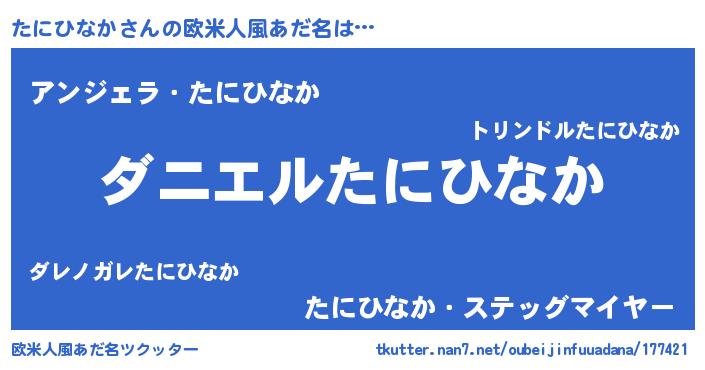 | 男性向けラノベタイトル風あだ名 | 『ノーゲーム・ノータニヒナカ』 |