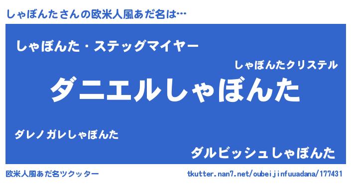| 男性向けラノベタイトル風あだ名 | 『おまえをオタクにしてやるから、俺をしゃぼんたにしてくれ! 』 |