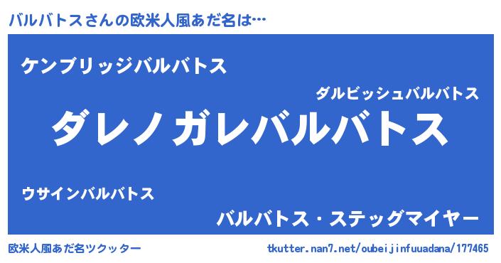 | ヘコむあだ名 | 『バルバトス(笑)』『バルぷりん』 |