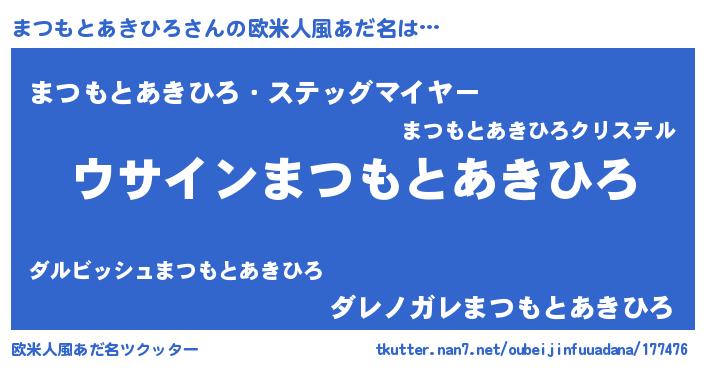 | 男性向けラノベタイトル風あだ名 | 『ダンジョンにまつもとあきひろを求めるのは間違っているだろうか』 |