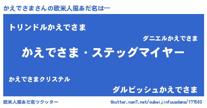 | 意味不明あだ名 | 『ヨモギ科かえでさま属』 |