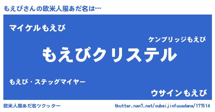 | ファンタジー風あだ名 | 『エターナルモエビー』『モエフェル』 |