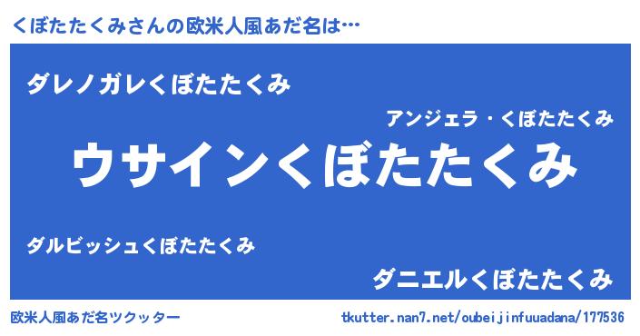 | 胡散臭い通販商品みたいなあだ名 | 『信頼と実績のサプリメント…その名も「くぼたたくみ」』 |