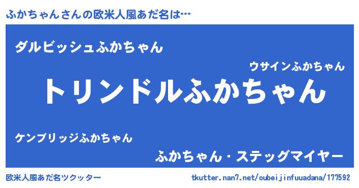 | ヘコむあだ名 | 『ふかちゃん(遠い目)』『ふかっぺ』 |