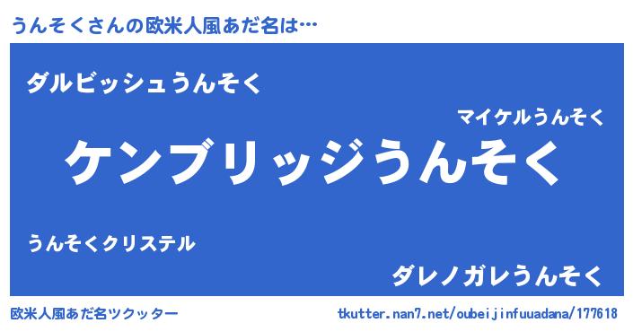 | 男性向けラノベタイトル風あだ名 | 『Re:うんそくから始める異世界生活』 |