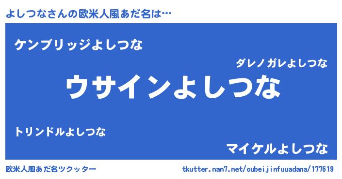 | 女子向けラノベタイトル風あだ名 | 『よしつなは平凡を望む』『闇のよしつな』 |