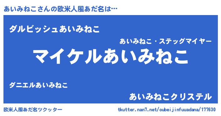 | 男性向けラノベタイトル風あだ名 | 『あいみねこの憂鬱』 |