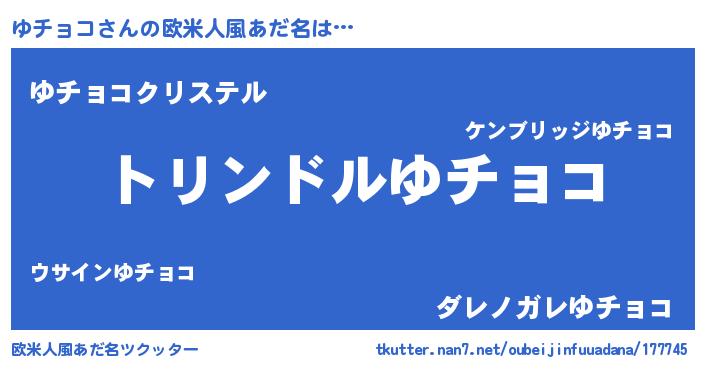| 男性向けラノベタイトル風あだ名 | 『ゆチョコ~年齢イコール彼女いない歴の魔法使い~』 |