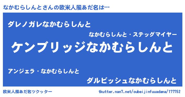 | 男性向けラノベタイトル風あだ名 | 『Re:なかむらしんとから始める異世界生活』 |