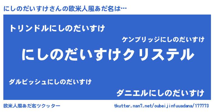 | 意味不明あだ名 | 『にしのだいすけフォーエバー』 |