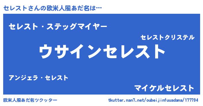 | 男性向けラノベタイトル風あだ名 | 『セレストの嫁は女の子じゃないと思った?』 |