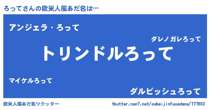 | 意味不明あだ名 | 『なめこ科ろって属』『永久保存ろって』 |