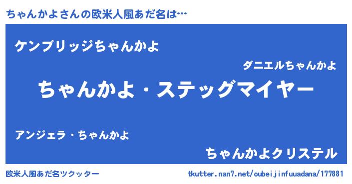| 恥ずかしいあだ名 | 『チャンカヨデラックス』『ちゃっちょ』 |