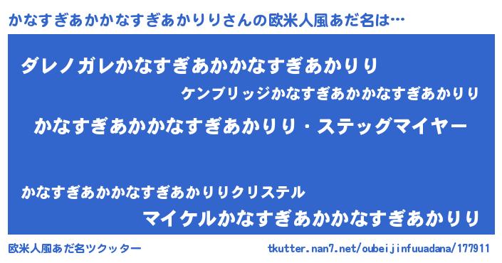 | 男性向けラノベタイトル風あだ名 | 『緋弾のカナスギアカカナスギアカリリ』 |