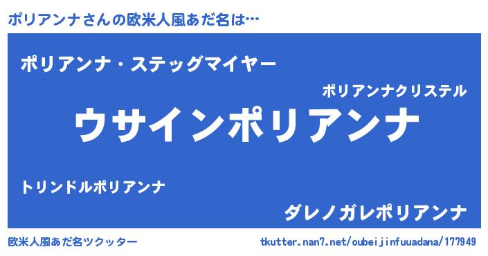 | 男性向けラノベタイトル風あだ名 | 『ポリアンナの嫁は女の子じゃないと思った?』 |
