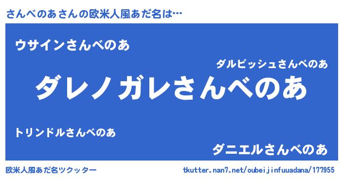 | 男性向けラノベタイトル風あだ名 | 『この素晴らしい世界にさんべのあを!』 |