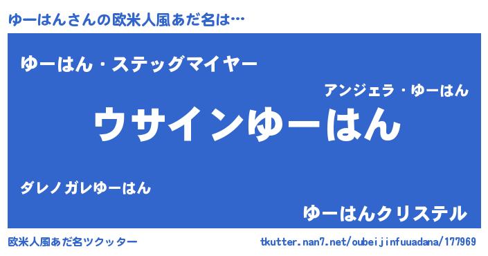 | ヒーロー風カッコイイあだ名 | 『銀牙騎士ユー』『ウルトラゆーはんマン』 |