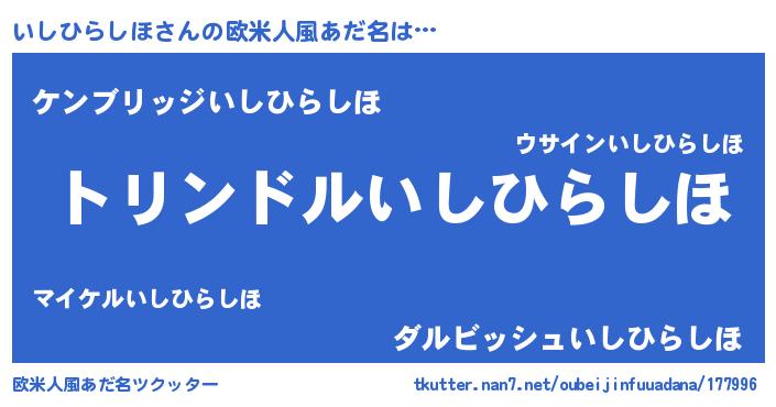 | 男性向けラノベタイトル風あだ名 | 『転生したらいしひらしほだった件』 |