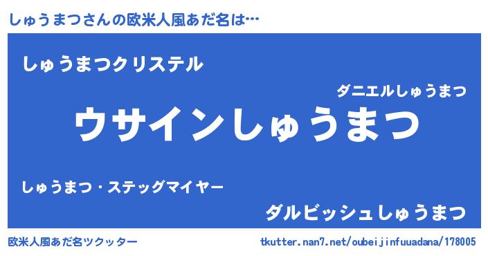 | ポケモン風あだ名 | 『ヒシュウマツ』『シュウダネ』 |
