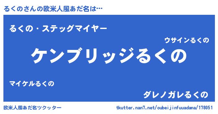 | 意味不明あだ名 | 『自称るくの』『住所不定無職るくの(1歳)』 |