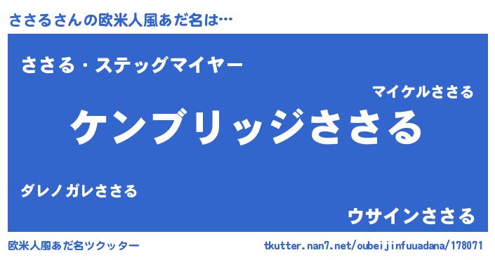 | ピコ太郎風あだ名 | 『ササ一郎』『サコ太郎』『ピサ六郎』 |