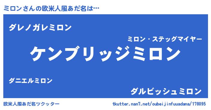 | 男性向けラノベタイトル風あだ名 | 『Re:ミロンから始める異世界生活』 |