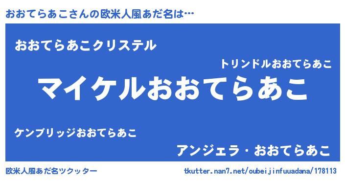 | 男性向けラノベタイトル風あだ名 | 『オオテラアコアートオンライン』 |