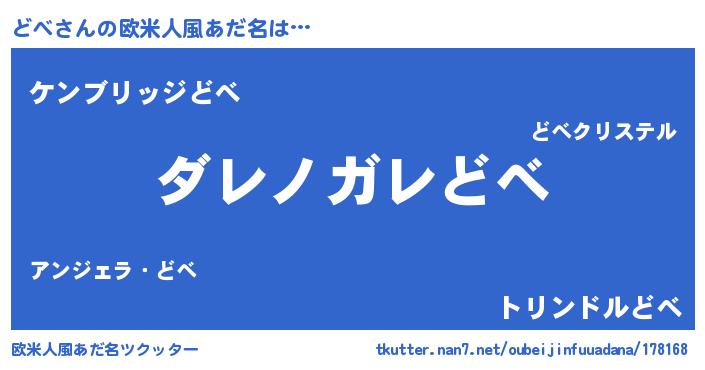 | 男性向けラノベタイトル風あだ名 | 『魔弾の王とどべ』『魔法科高校のどべ』 |