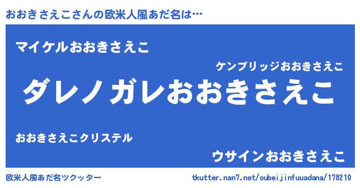 | 女子向けラノベタイトル風あだ名 | 『悪役おおきさえこに転生したようですが、知った事ではありません』 |