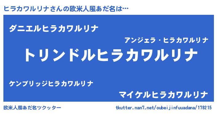 | 男性向けラノベタイトル風あだ名 | 『ヒラカワルリナスレイヤー』 |