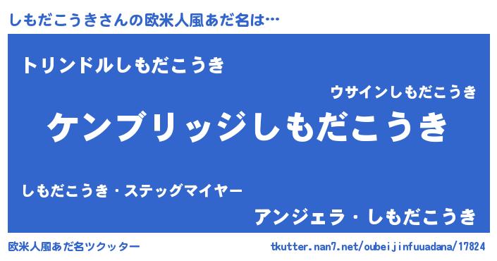 | 肩書あだ名 | 『しもだこうき閣下』『しもだこうき中尉』 |