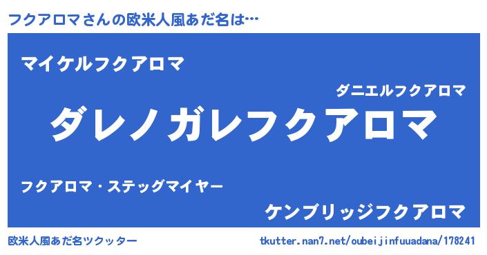 | 意味不明あだ名 | 『住所不定無職フクアロマ(50歳)』 |