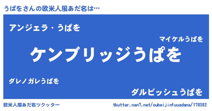 | 女子向けラノベタイトル風あだ名 | 『うぱをストレイドッグス』 |