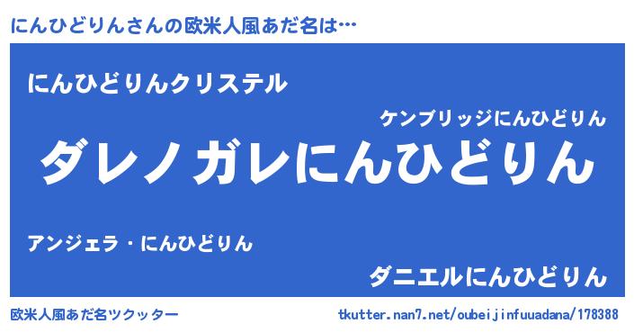 | ポケモン風あだ名 | 『ニーンイ』『ニンヒダネ』 |