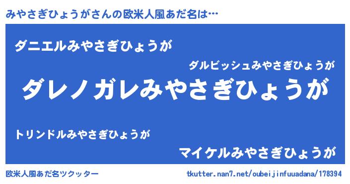 | ヒーロー風カッコイイあだ名 | 『仮面ミヤダー』『ネオミヤサギヒョウガ』 |