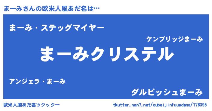 | 女子向けラノベタイトル風あだ名 | 『まーみ伯爵の花嫁』『まーみの契約王妃』 |