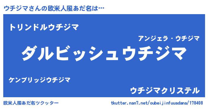 | 男性向けラノベタイトル風あだ名 | 『ウチジマという概念が存在しない退屈な世界 』 |