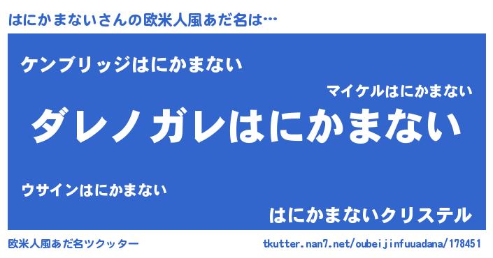 | 意味不明あだ名 | 『住所不定無職はにかまない(11歳)』 |