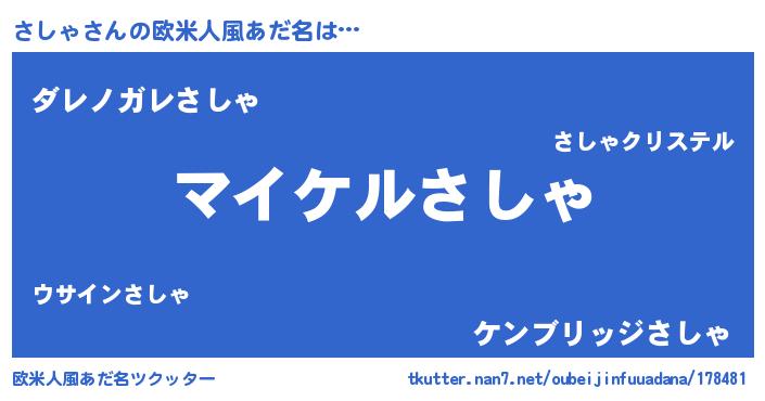 | 意味不明あだ名 | 『ペロリンさしゃ』『自称さしゃ』 |