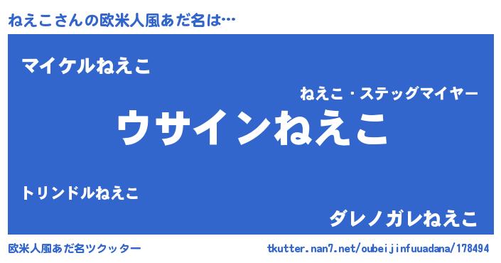 | 意味不明あだ名 | 『とにかく怪しいねえこ』『自称ねえこ』 |