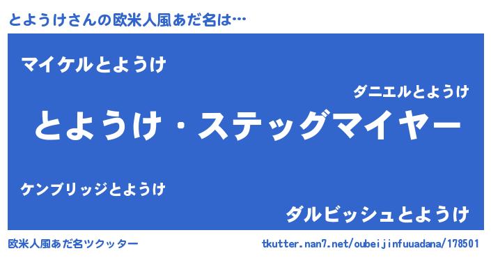 | 男性向けラノベタイトル風あだ名 | 『緋弾のトヨウケ』『とようけの憂鬱』 |