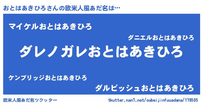 | 男性向けラノベタイトル風あだ名 | 『魔弾の王とおとはあきひろ』 |