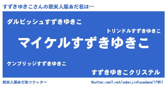 | 男性向けラノベタイトル風あだ名 | 『スズキユキコアートオンライン』 |
