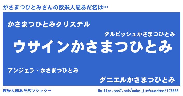 | 男性向けラノベタイトル風あだ名 | 『かさまつひとみの嫁は女の子じゃないと思った?』 |
